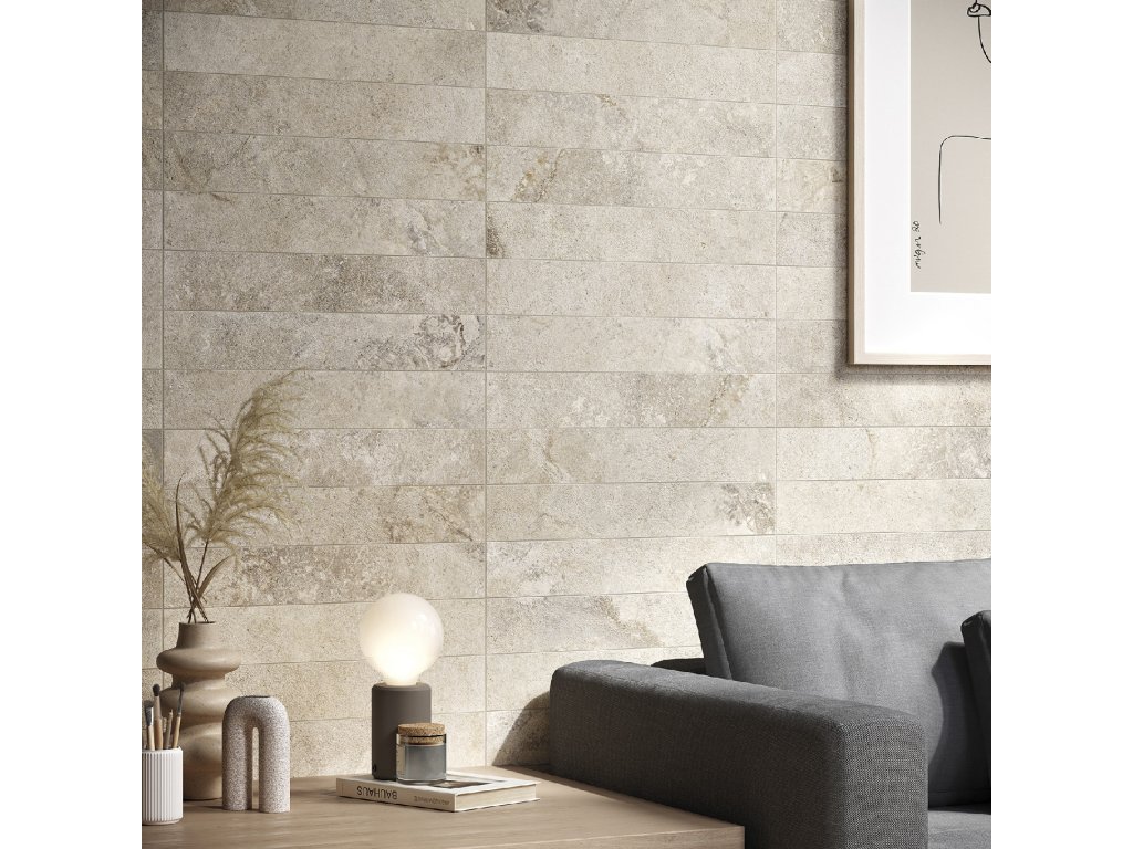 Dlažba Ascot Ascot Stone Valley Sabbia v béžové barvě nabízí rozměr 9,7×59,5 cm. Je určena pro interiér a komerční prostory, konkrétně do koupelny nebo kuchyně.