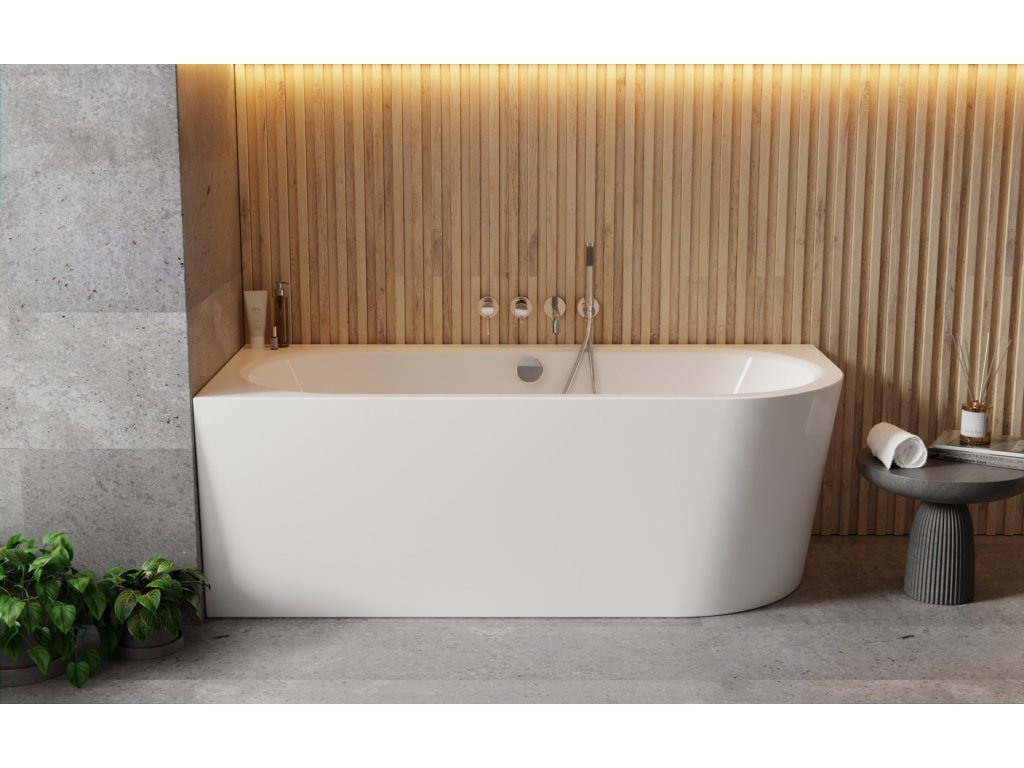 Asymetrická volně stojící vana AVITA A-LINE v bílé lesklé barvě, která je určena pro instalaci do rohu v dvou praktických rozměrech, robustní konstrukce a jemný moderní design. Vana je vyrobena z kvalitního sanitárního akrylátu. Díky tomu má praktickou hmotnost a je dostatečně pevná. Vanu lze umístit ke zdi. Výhodou je snadná instalace, není nutné podezdění ani obklad vany. Součástí vany je také odtokový systém click-clack s napouštěním přepadem v barvě chrom (McAlpine). Dále nabízíme tyto sifony za příplatek v dalších 3 barvách (zlatá, černá, bílá).