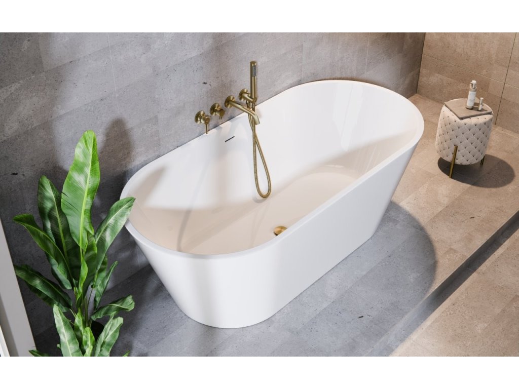 Olsen Spa Volně stojící vana DEEVA bílá - Barva - Bílá, Barva sifonu - Zlatá, Rozměr vany - 150 × 75 cm VANDEEVA150Z