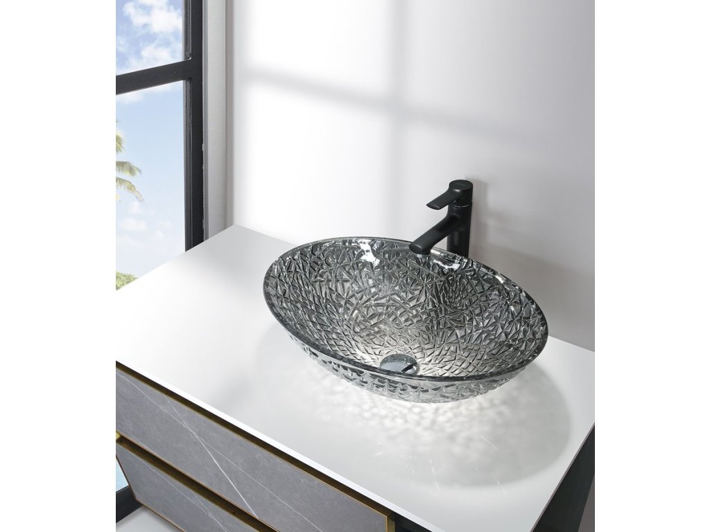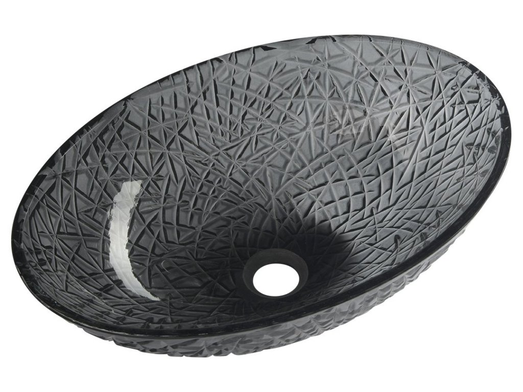 PURUS skleněné gravírované retro umyvadlo na desku, 50x36 cm, černá TY305SG