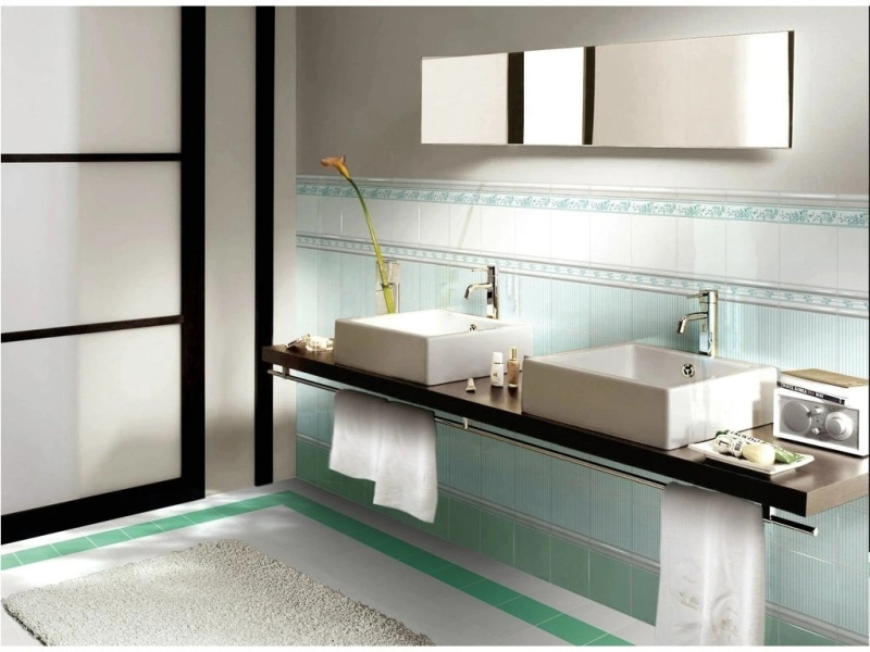 Díky malým formátům a dekorativním prvkům lze jednotlivé obklady kombinovat a vytvářet různé kompozice – například kombinaci základního obkladu, listely a dekoru.