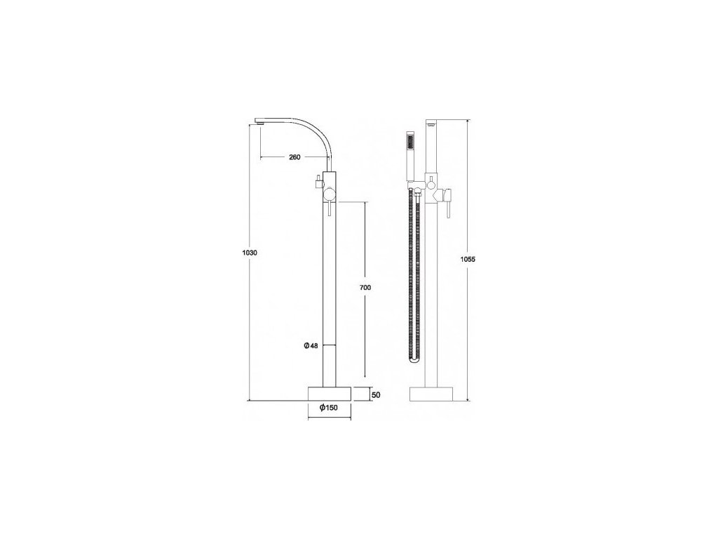 Vysoká vaňová batéria DECCO I s výškou 1055 mm od európskeho dodávateľa vodovodných batérií BESCO . Batéria je určená na inštaláciu do podlahy a oceníte ju najmä ak máte voľne stojacu vaňu. Dodávané vrátane príslušenstva - sprchová hlavica s hadicou. Stojanková vaňová batéria pre moderné kúpeľne. Dodávame v troch farbách a to lesklý chróm, čierna matná alebo zlatá.