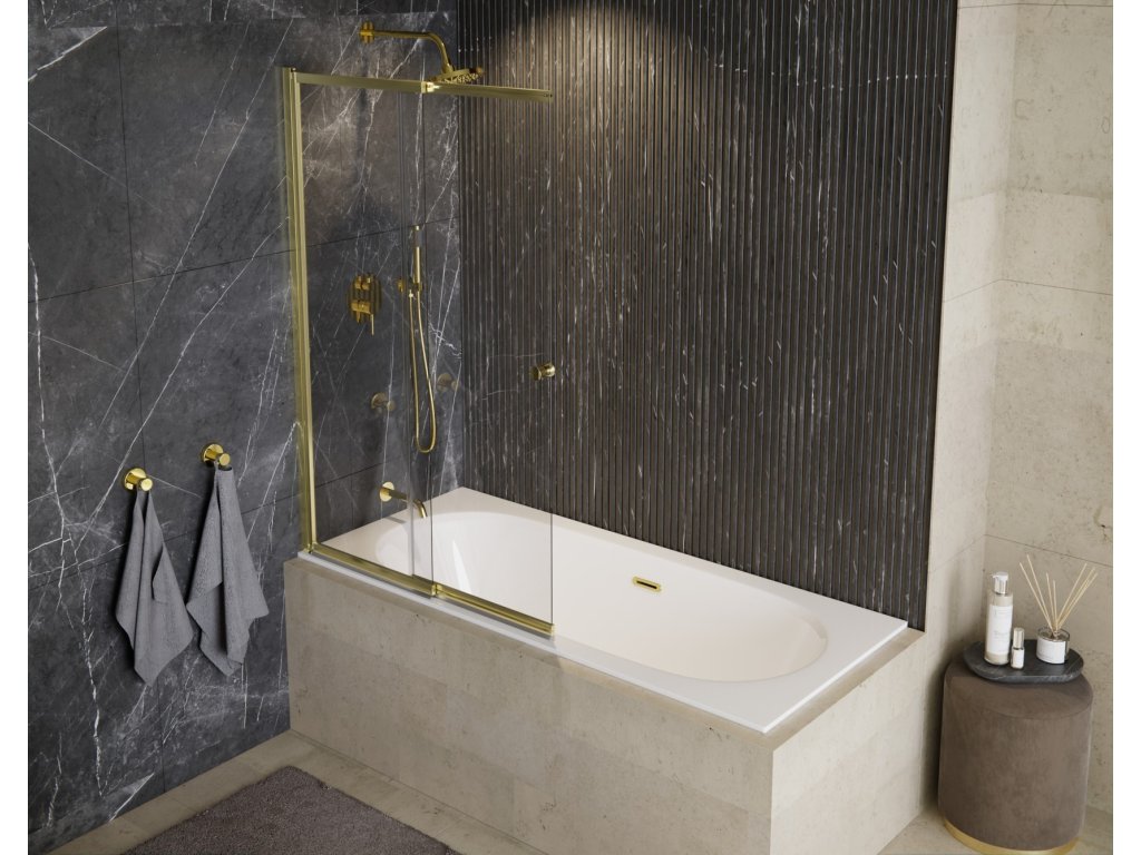 Olsen Spa Vanová zástěna EASY SLIDE GOLD - BARVA rámu - Zlatá, Rozměr A - 100 cm, Směr zavírání - Univerzální Levé / Pravé, Výplň - Čiré bezpečnostní sklo - 4 mm BCEASL100GC