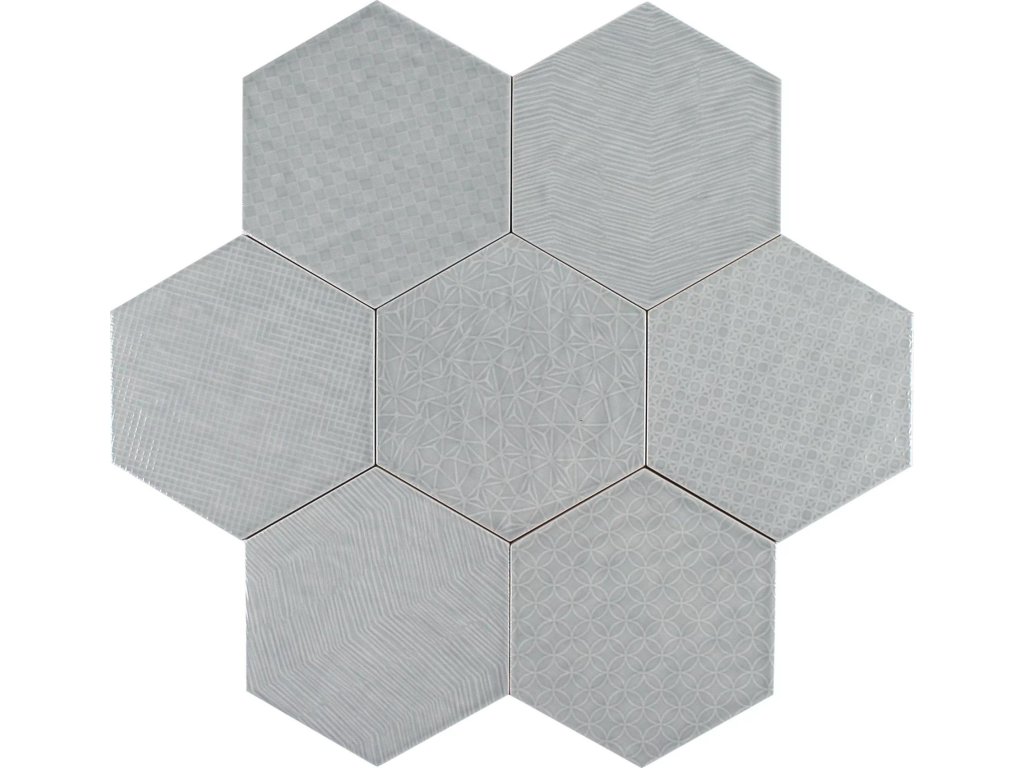 Retro Dlažba Deceram Albatross Hex Grey 17,5x20,2 Deco Random MIX