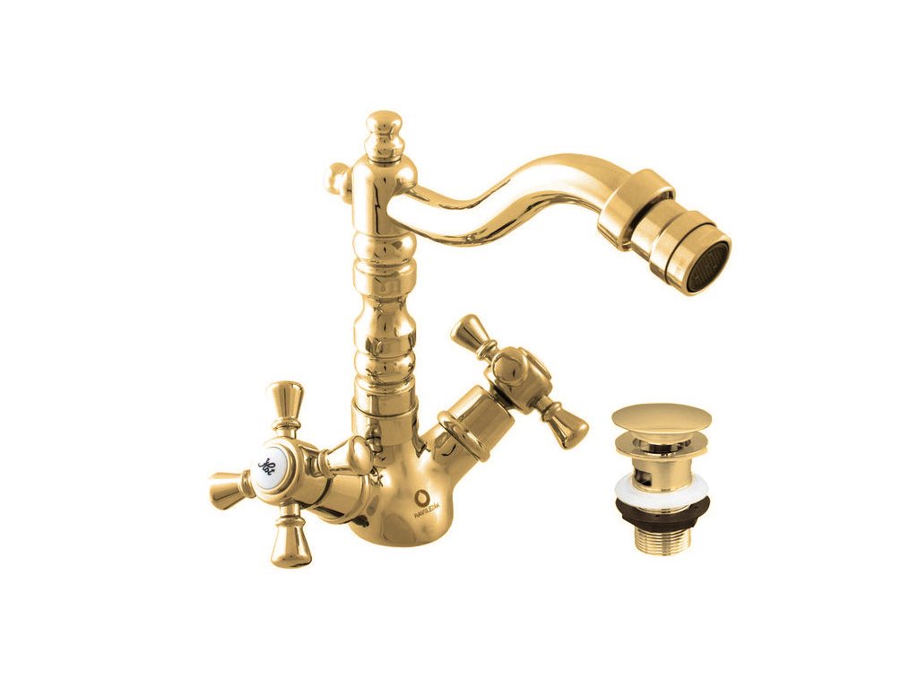 SLEZÁK RAV MORAVA RETRO - Bidetová baterie s výpustí, Zlatá lesklá MK321.0/9Z - ZLATÁ - lesklá, 3,8"