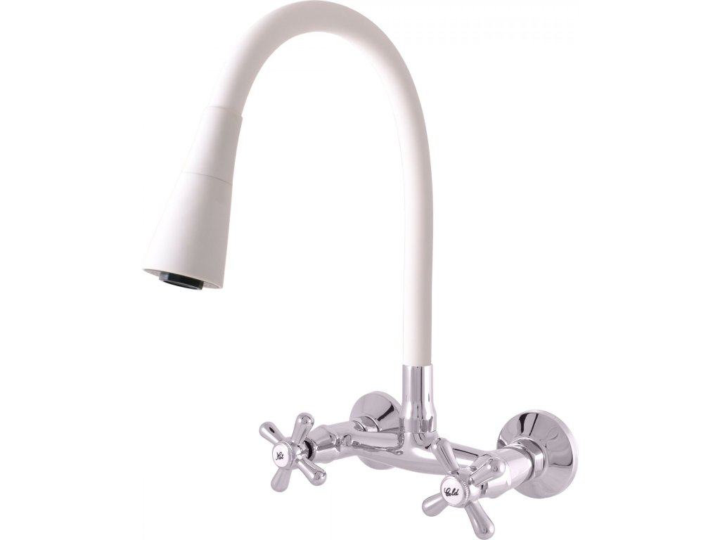 SLEZÁK RAV MORAVA RETRO - Umyvadlová/dřezová baterie s flexibilním ramínkem, Bílá/Chrom MK102.5/13CB - 150 mm