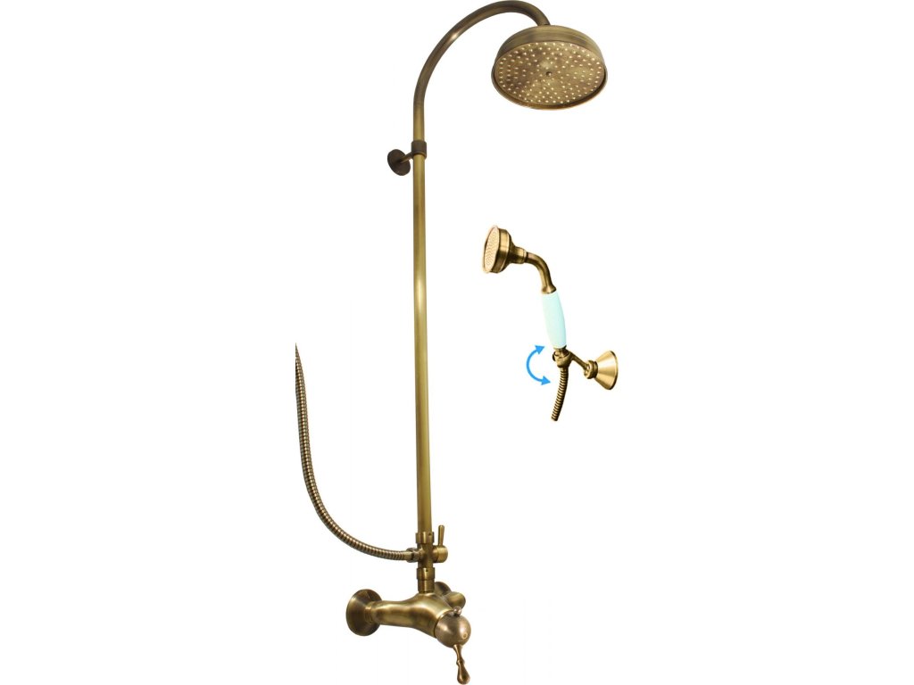 Slezák Rav Labe stará mosaz retro baterie sprchová se sprchou a otočným retro držákem L481.5/2SM