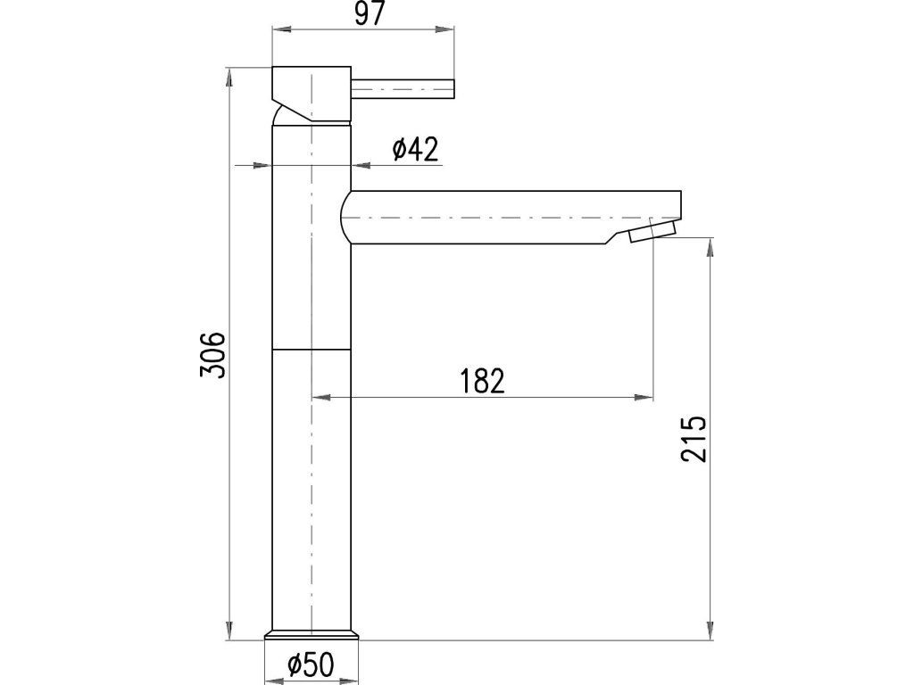 Vodovodní baterie umyvadlová stojánková, vysoká pro umyvadla na desku.