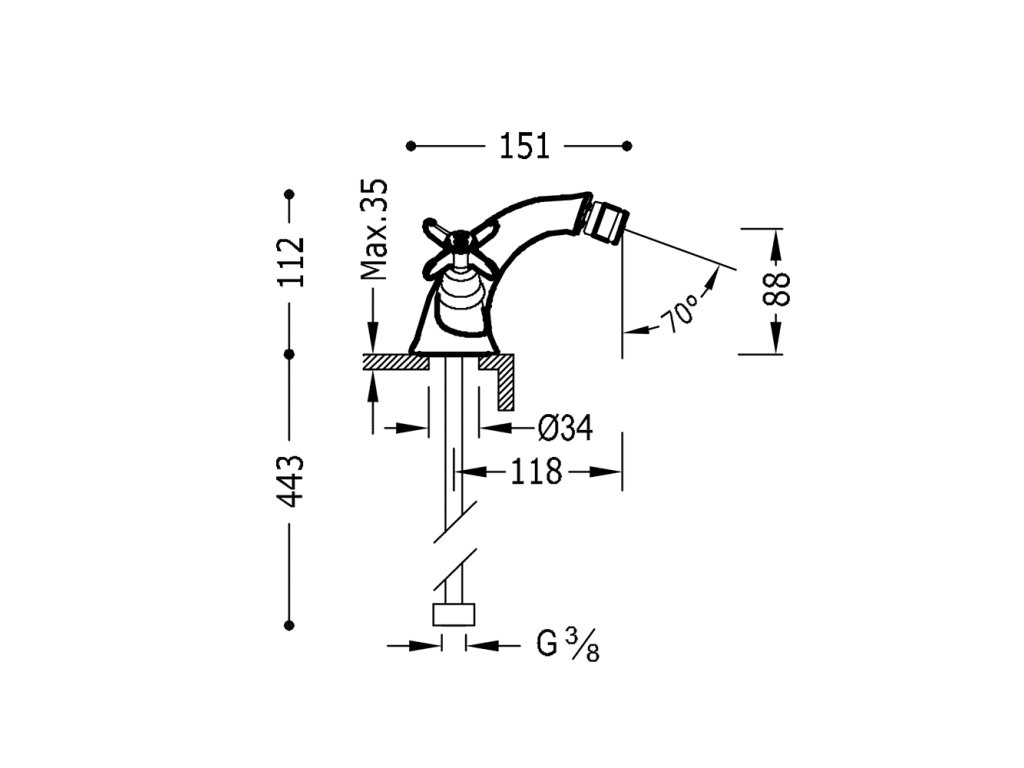 Tres Clasic kohoutková bidetová baterie zlato 24212101OR