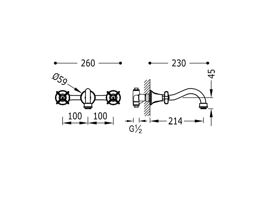 Tres Clasic nástěnná umyvadlová retro baterie chrom 24215101