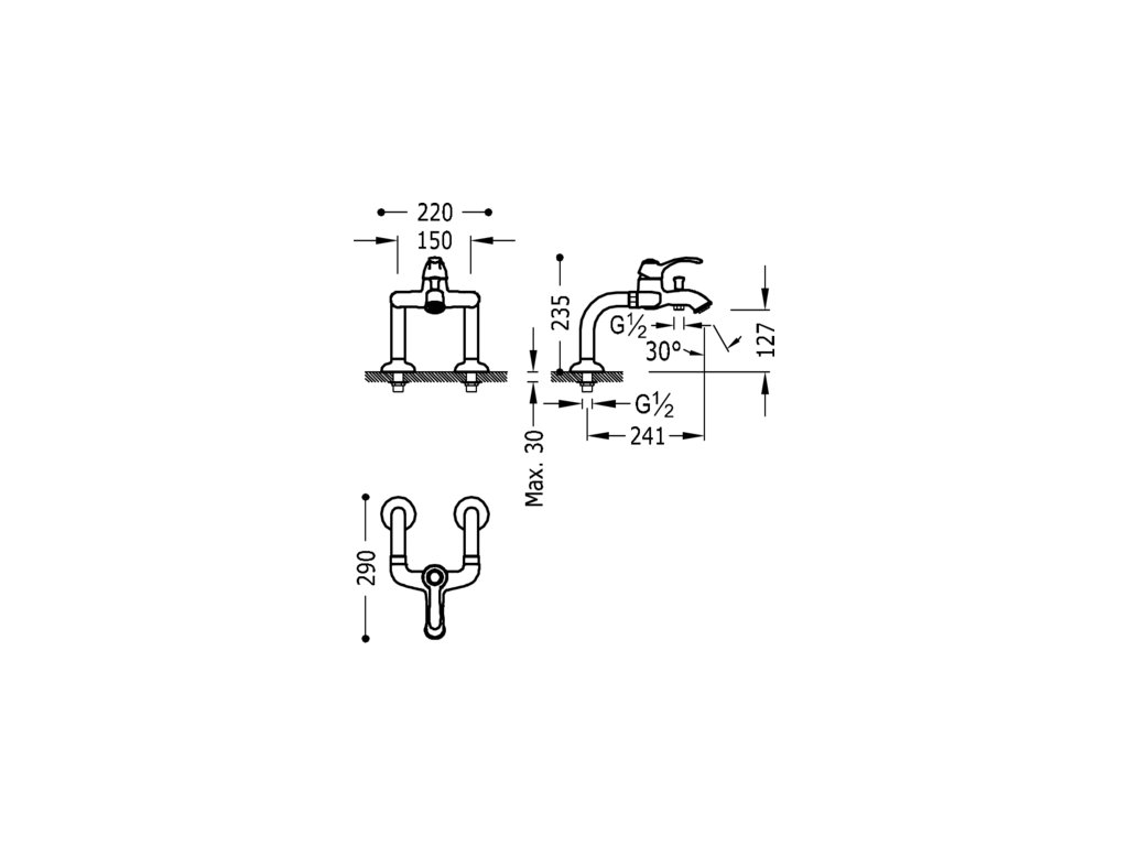 Tres Clasic stojánková vanová retro baterie jednopáková ocel 24219401AC