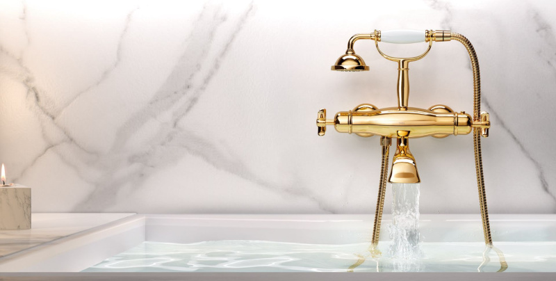 Vybírat můžete ze sérií Clasic a Mont Blanc – od pákových umyvadlových a dřezových baterií po vanové a sprchové varianty. Nabízíme několik povrchů: chrom, lesklá/matná mosaz, zlato, ocel a černá matná, takže snadno sladíte celou koupelnu do jednotného stylu. Každý model staví na spolehlivosti, pohodlném ovládání a estetice, která dobře funguje v retro, vintage i klasicky laděných interiérech.